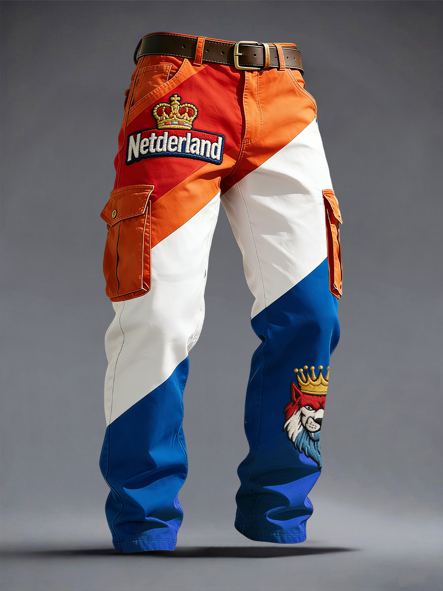 Retro Nederlandse koningsdag abstracte camouflage casual werkbroek
