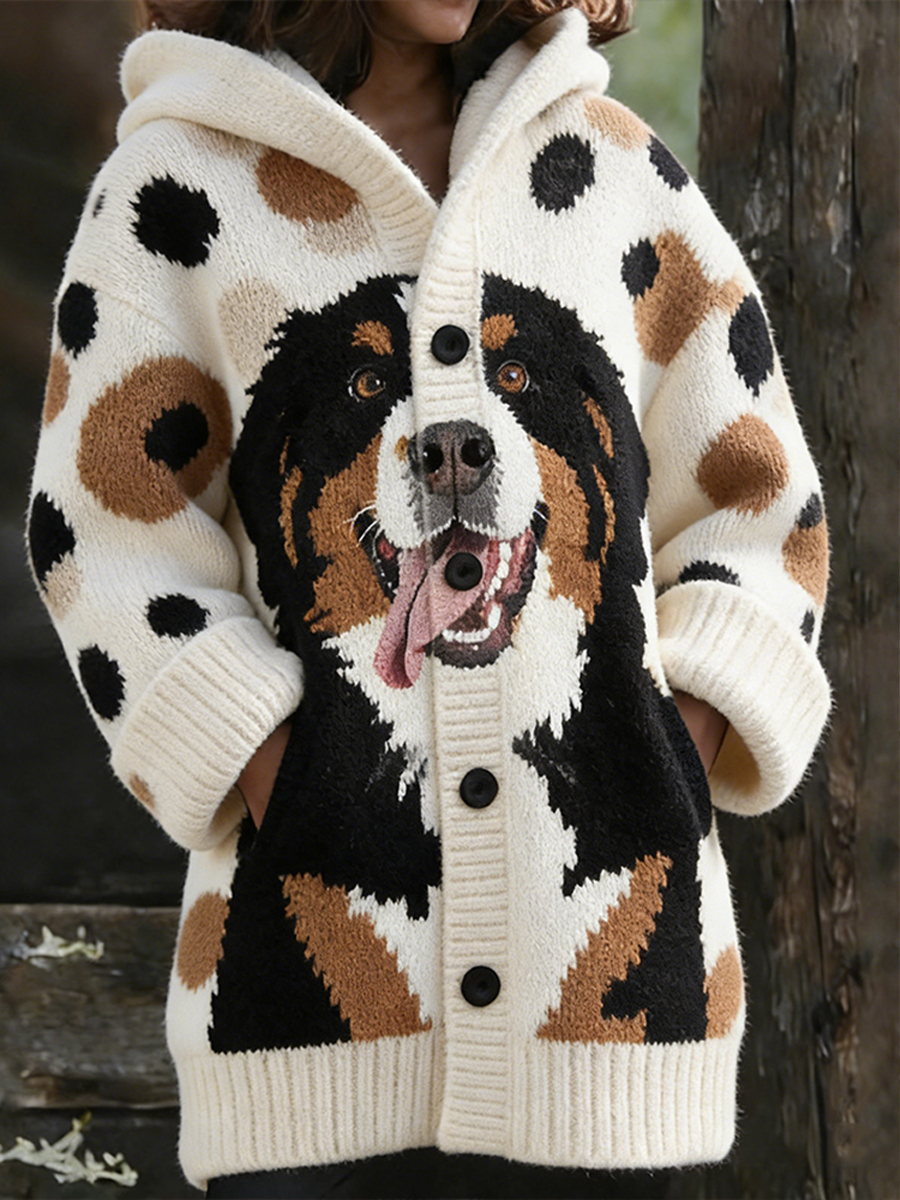 Dames retro schattige puppy patroon trui jas