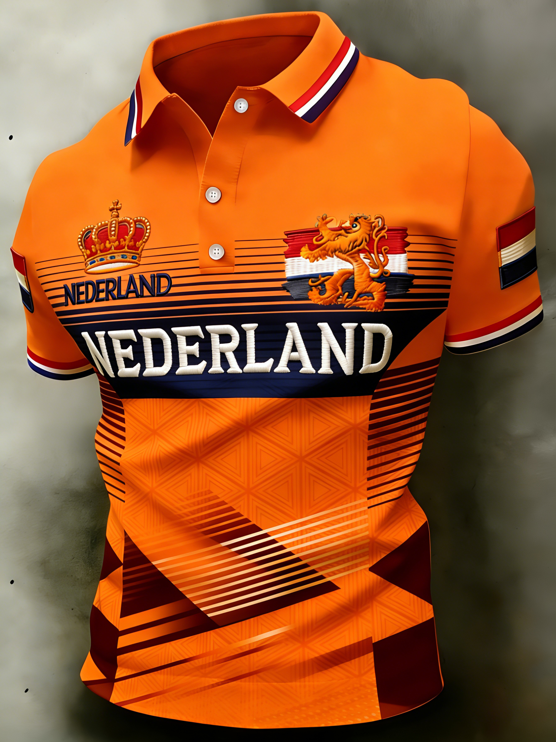 Heren koningsdag oranje bedrukt ruit katoen casual kraag sweatshirt