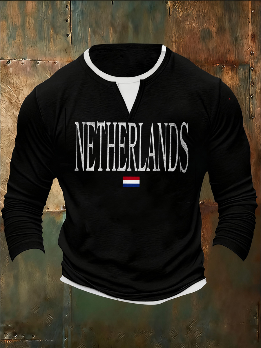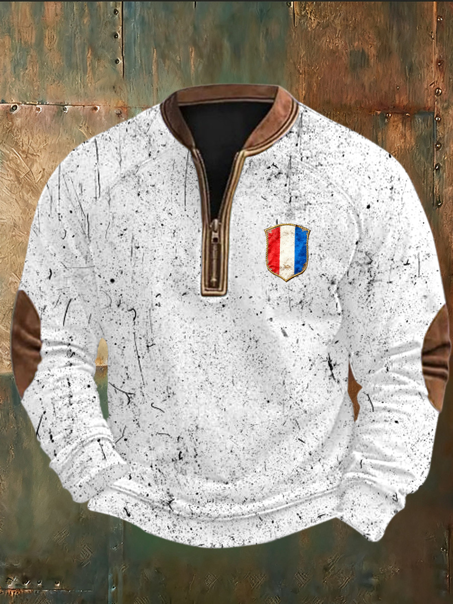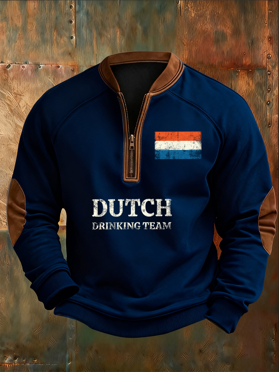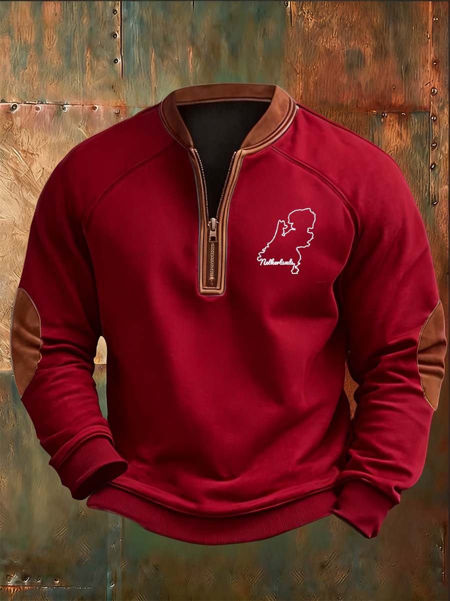 Heren vintage bedrukt casual halfzip sweatshirt met fleece kraag