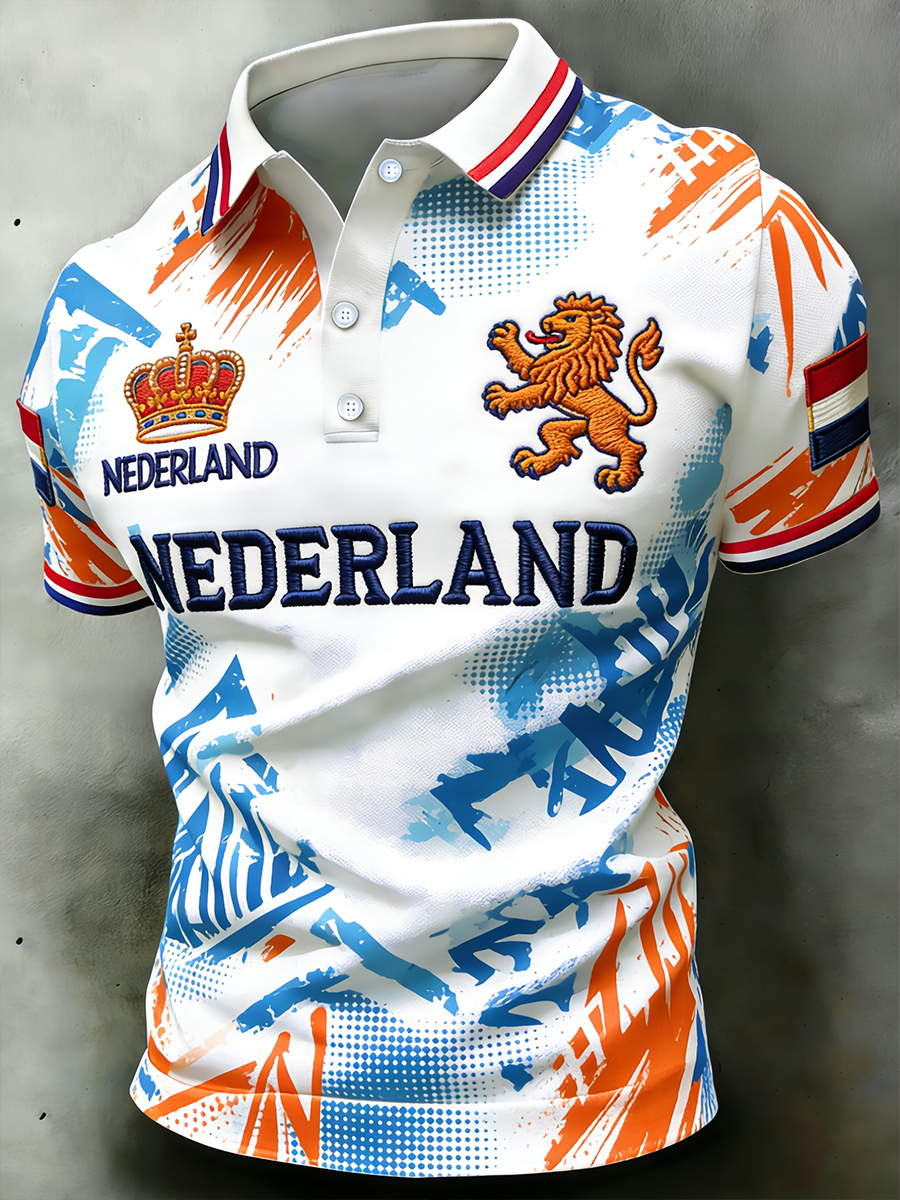 Retro Nederlandse koningsdag patchwork casual poloshirt