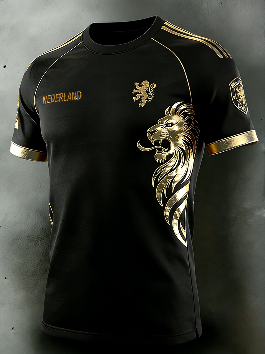 Heren T-shirt met leeuwelement, raglanmouwen en korte mouwen