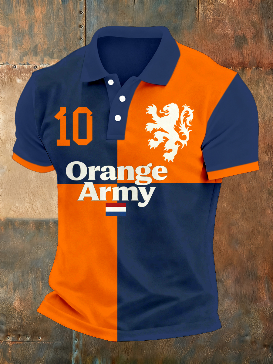 Herenvintage Nederlandse Vlag Veteraan Camouflage Leeuw Kroon Gedrukt Casual Katoen Korte Mouw Poloshirt