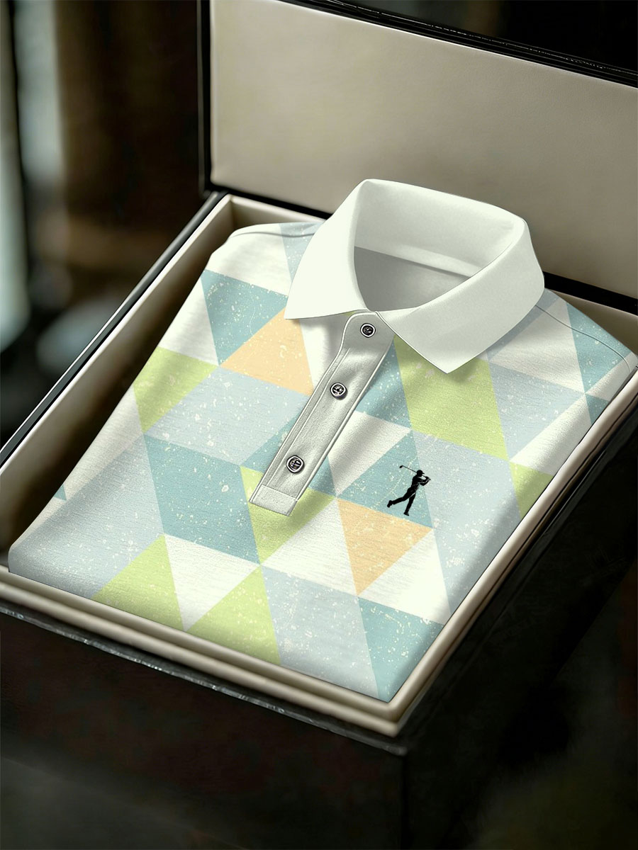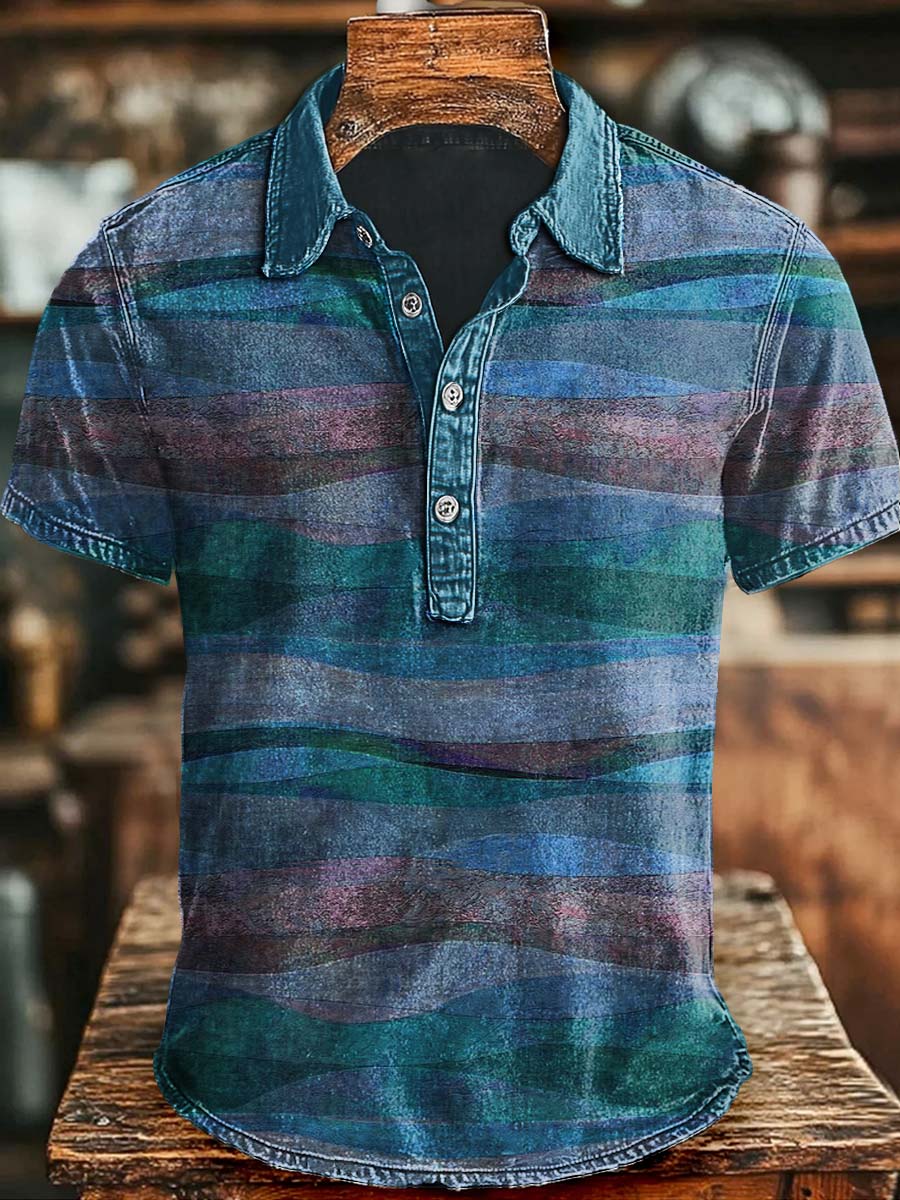 Retro gradiënt geometrische kunstprint casual zakelijk poloshirt voor heren