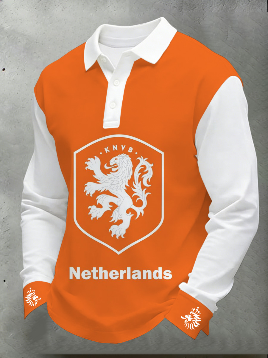 Nederland WK voetbal Supporter bedrukt poloshirt met lange mouwen