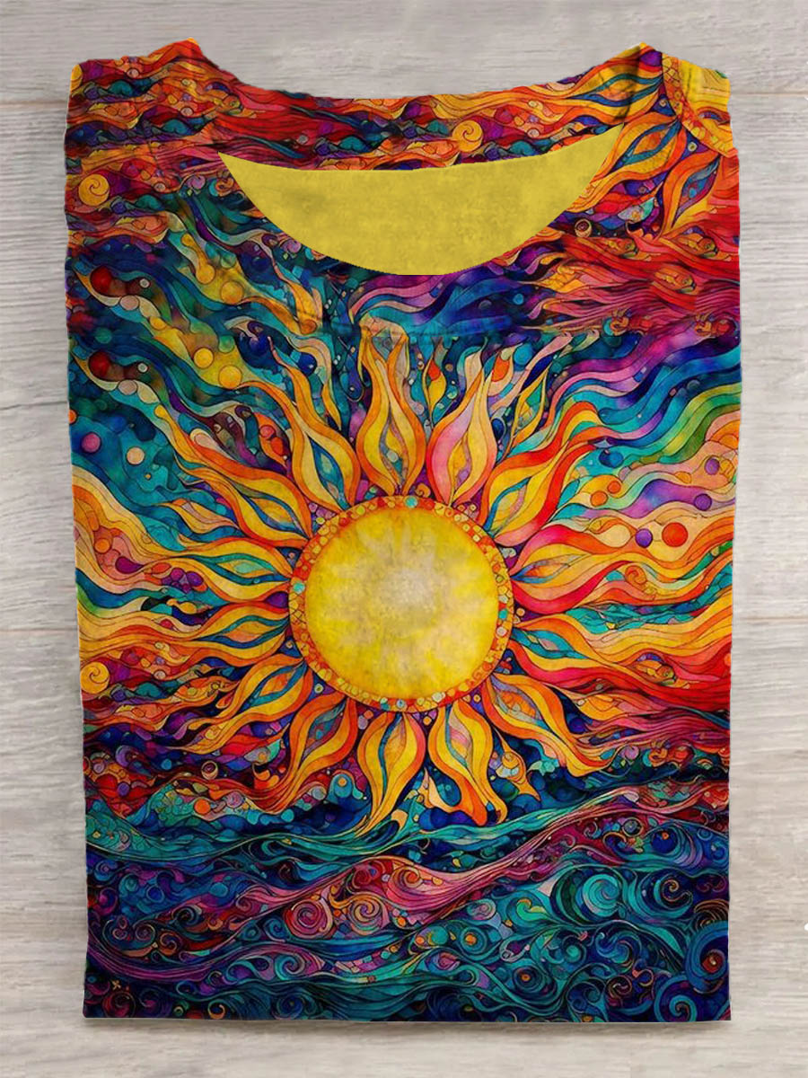 Unisex Sun God Kleurrijk Abstract Print Design T-shirt