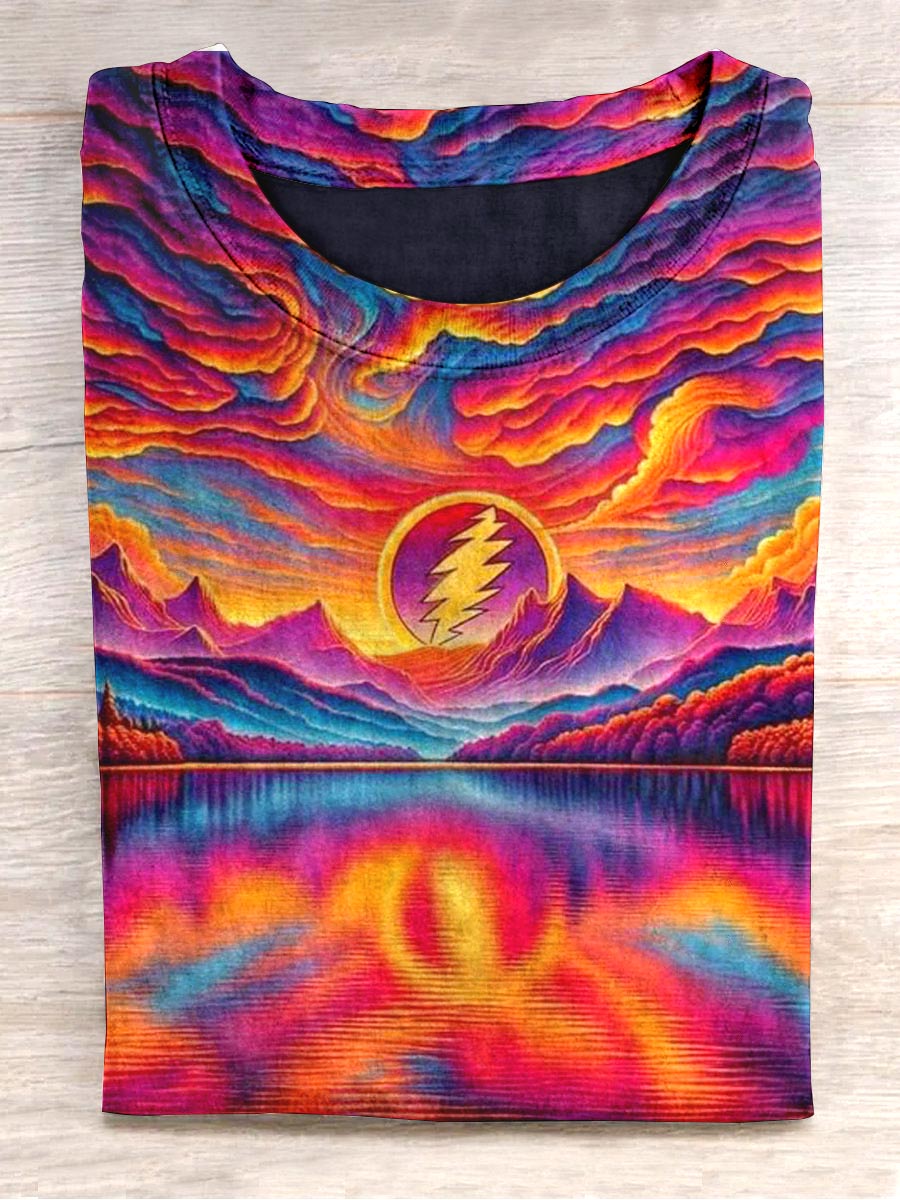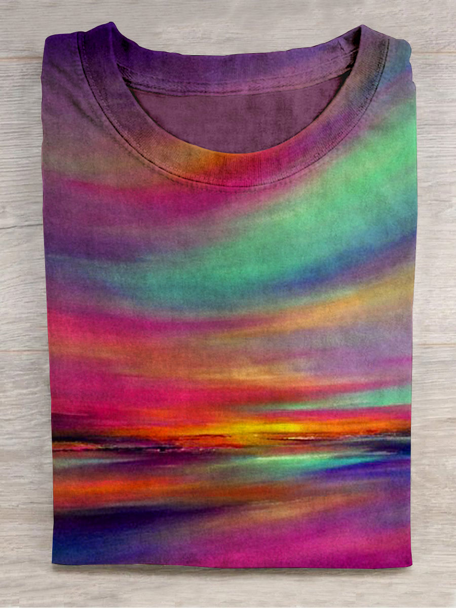 Unisex Kleurrijk Landschap Abstract Print Ontwerp T-shirt