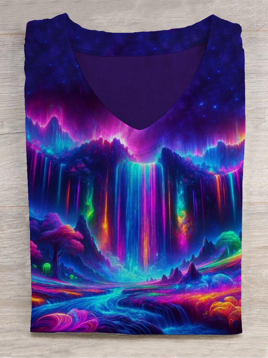 Unisex Kleurrijke Fluorescerende Waterval Abstract Print Design T-shirt